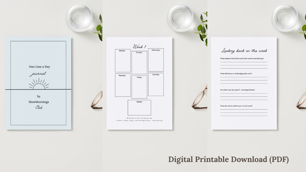 One Line a Day by Slow Mornings Club is a gentle journaling companion designed to help you slow down, reflect, and capture the small moments that shape your days.